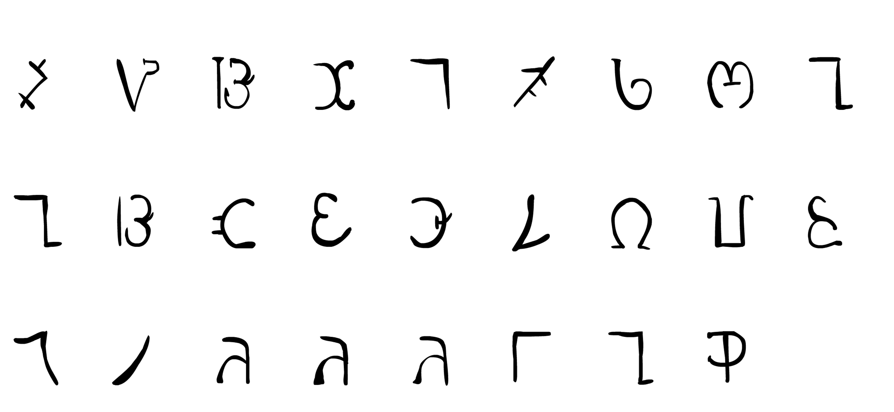 símbolos que cualquiera hubiera confundido con las usuales letras deformadas de