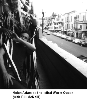 by Kristin Prevallet ![]() As Stoker writes in The Lair of the White Worm, "In the past, in the early days of the world, there were monsters who were so vast that they could exist for thousands of years. Some of them must have overlapped the Christian era. They may have progressed intellectually in process of time. If they had in any way so progressed, or even got the most rudimentary form of brain, they would be the most dangerous things that ever were in the world....Such creatures may have grown down as well as up. They MAY have grown into, or something like, human beings." Adam is able to extract this pre-Christian lore out of the most mundane cultural images. And in doing so, she critiques the subordinate position of beautiful women as sellers of the status quo that oppresses them. Making them into alien creatures gives them an intellectual power that is denied to them when they are presented as nothing more than objects of male desire. ![]() Adam died in New York City in 1993, and her ballads remain in obscure, limited edition books and out-of-print magazines. This is partly because in spite of her post-modern methods of drawing multiple forms into her work, she ultimately resisted modernity and remained Victorian at heart. In this sense, Adam was not of her time, and like the women of her ballads, always existed between two worlds, or on the verge of transformation from one into another. Yet, like many women who are continually left out of the narratives constructed for literary history, her idiosyncratic stubborness is her strength. * For an excellent and exquisitely assembled book on this subject, see "Inverted Odysseys: Claude Cahun, Maya Deren, Cindy Sherman." Edited by Shelley Rice, MIT Press, 1999. All of these collages are located at the Poetry/ Rare Books Collection at SUNY Buffalo where Helen Adam's archive is also held. They are reproduced here with the permission of The Poetry/Rare Books Collection, University Libraries, State University of New York at Buffalo and the Literary Estate of Helen Adam. © The Literary Estate of Helen Adam. Kristin Prevallet has edited and written an introduction for a selected edition of Helen Adam's ballads and collages called Fire Brackeled Bones: The Selected Helen Adam. Her essay "Helen Adam, Ballads, Brandy...and the Beat Generation?" will be included in the anthology On the Distaff Side: Another Look at the Beat Generation (forthcoming, Rutgers University Press). She is a poet and essayist who lives in Brooklyn, NY. | ||