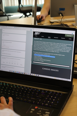 Along with a B.A. and a minor in Digital Technology & Culture, we also offer a Games Studies & Design certificate and sponsor the CMDCStudios, a game guild comprised of students, alums, and friends. In all cases, students are taught to conceptualize, in both research and practice, applications of digital technologies and to think critically about digital media and the ways humans interact and engage with them.